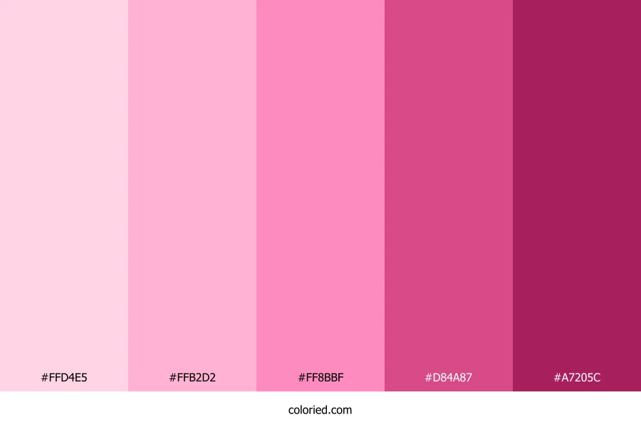 ![]() | #FFD4E5 | 255, 212, 229 | 336, 100%, 92% | 0%, 17%, 10%, 0% | oklch(0.911 0.053 352) |