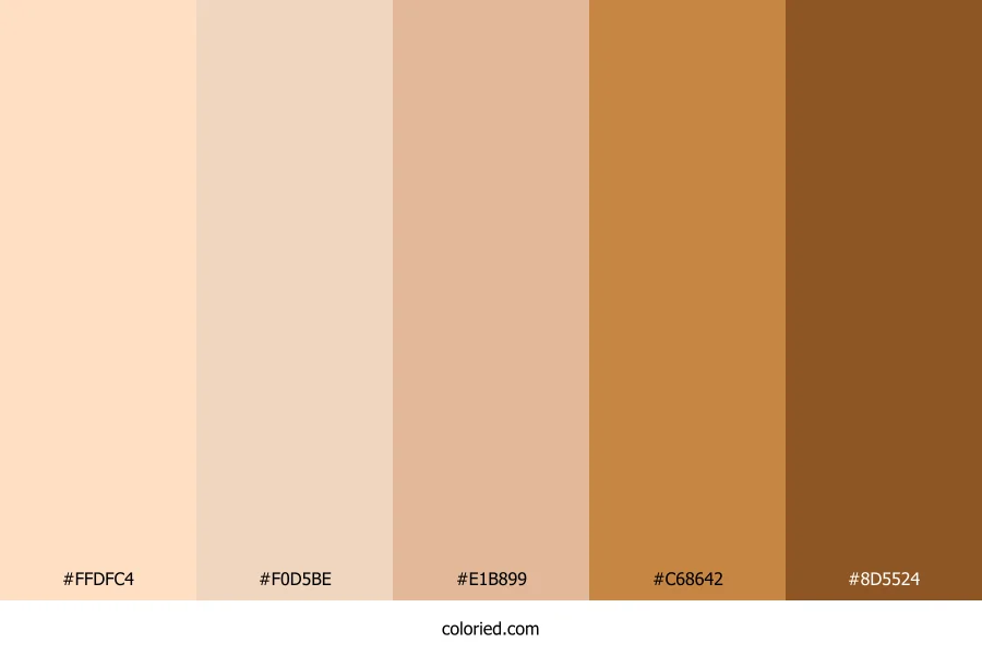 | #E1B899 | 225, 184, 153 | 26, 55%, 74% | 0%, 18%, 32%, 12% | oklch(0.811 0.063 59) | |