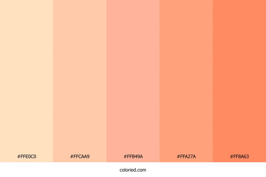 | #FFB49A | 255, 180, 154 | 15, 100%, 80% | 0%, 29%, 40%, 0% | oklch(0.835 0.095 40) | |