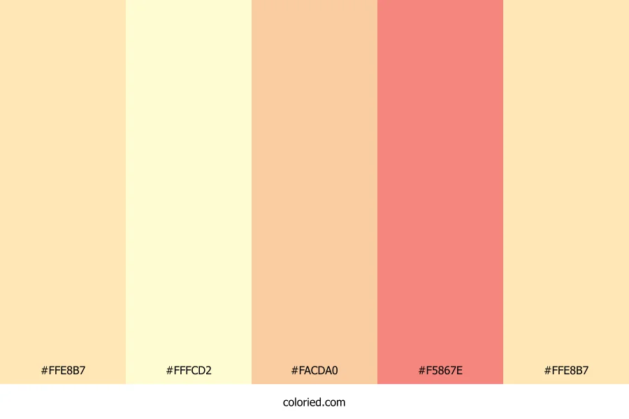 | #FFE8B7 | 255, 232, 183 | 41, 100%, 86% | 0%, 9%, 28%, 0% | oklch(0.938 0.068 86) |