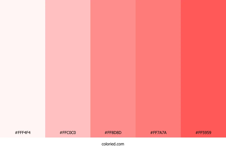 | #FF5959 | 255, 89, 89 | 0, 100%, 67% | 0%, 65%, 65%, 0% | oklch(0.687 0.202 24) |