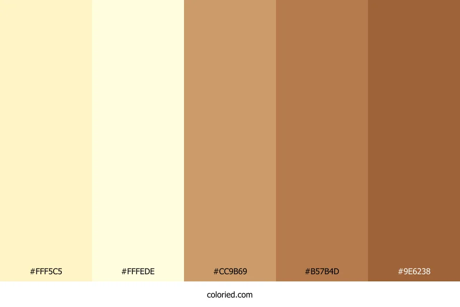 | #CC9B69 | 204, 155, 105 | 30, 49%, 61% | 0%, 24%, 49%, 20% | oklch(0.724 0.088 66) | |