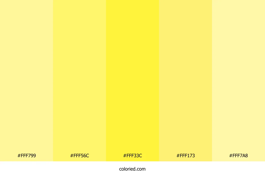 | #FFF173 | 255, 241, 115 | 54, 100%, 73% | 0%, 5%, 55%, 0% | oklch(0.945 0.147 103) | |