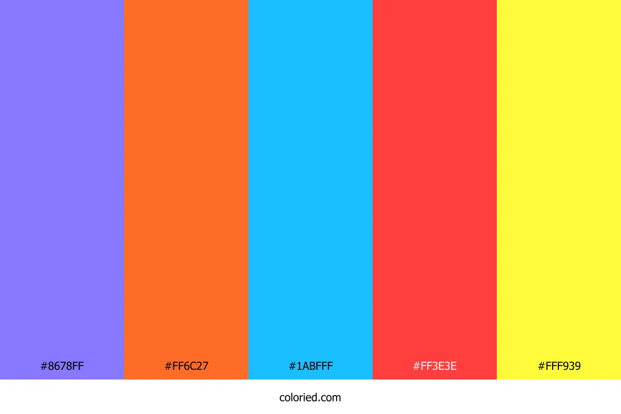 ![]() | #8678FF | 134, 120, 255 | 246, 100%, 74% | 47%, 53%, 0%, 0% | oklch(0.652 0.194 284) |