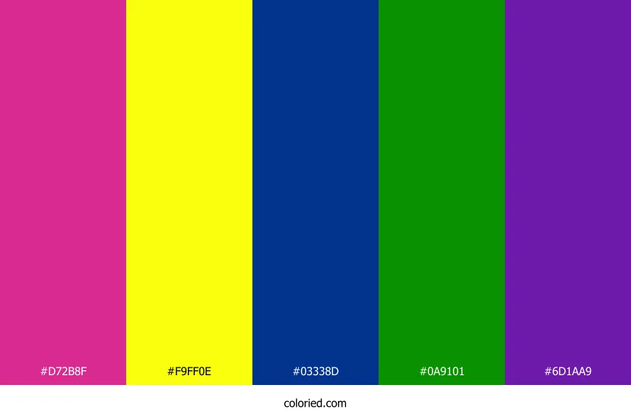 ![]() | #D72B8F | 215, 43, 143 | 325, 68%, 51% | 0%, 80%, 33%, 16% | oklch(0.596 0.221 351) |