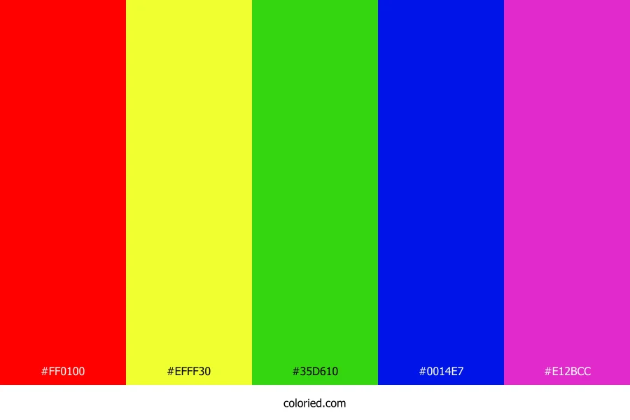 ![]() | #FF0100 | 255, 1, 0 | 0, 100%, 50% | 0%, 100%, 100%, 0% | oklch(0.628 0.257 29) |