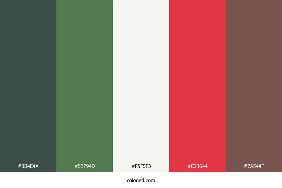 ![]() | #3B4E4A | 59, 78, 74 | 167, 14%, 27% | 24%, 0%, 5%, 69% | oklch(0.407 0.025 181) |