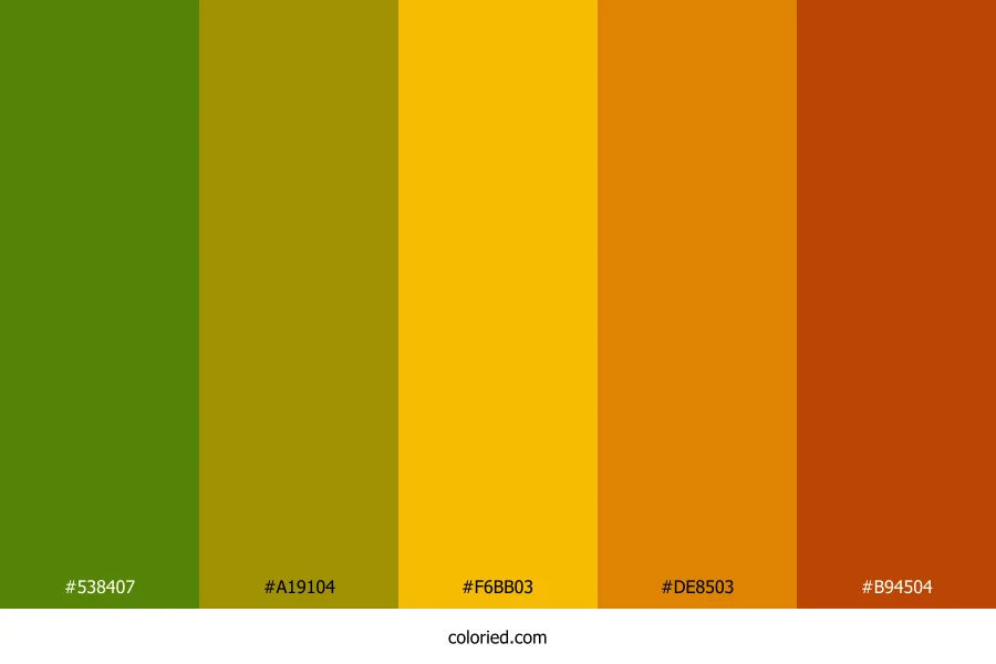 ![]() | #538407 | 83, 132, 7 | 84, 90%, 27% | 37%, 0%, 95%, 48% | oklch(0.557 0.150 131) |