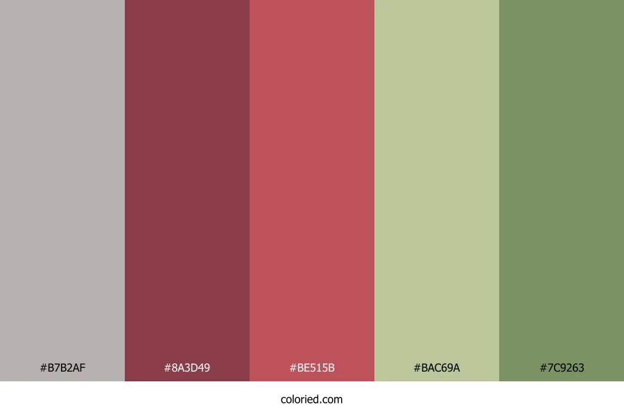 | #BE515B | 190, 81, 91 | 354, 46%, 53% | 0%, 57%, 52%, 25% | oklch(0.578 0.140 17) | |