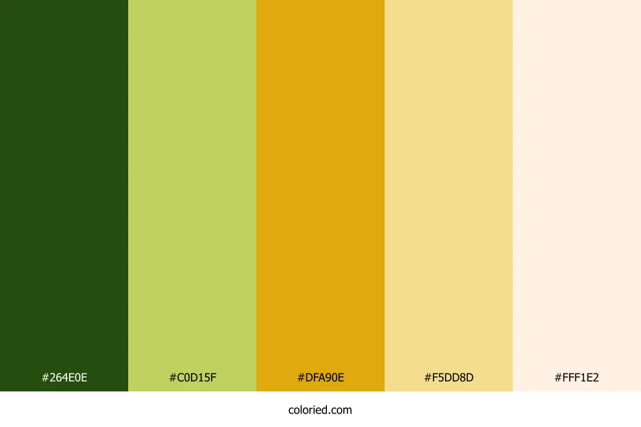 ![]() | #264E0E | 38, 78, 14 | 98, 70%, 18% | 51%, 0%, 82%, 69% | oklch(0.380 0.102 136) |
