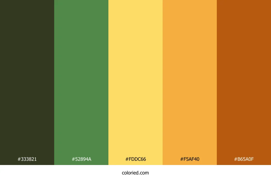 ![]() | #333821 | 51, 56, 33 | 73, 26%, 17% | 9%, 0%, 41%, 78% | oklch(0.329 0.039 119) |