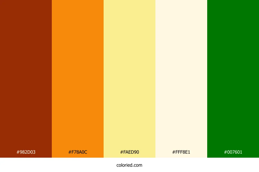 ![]() | #982D03 | 152, 45, 3 | 17, 96%, 30% | 0%, 70%, 98%, 40% | oklch(0.457 0.149 37) |