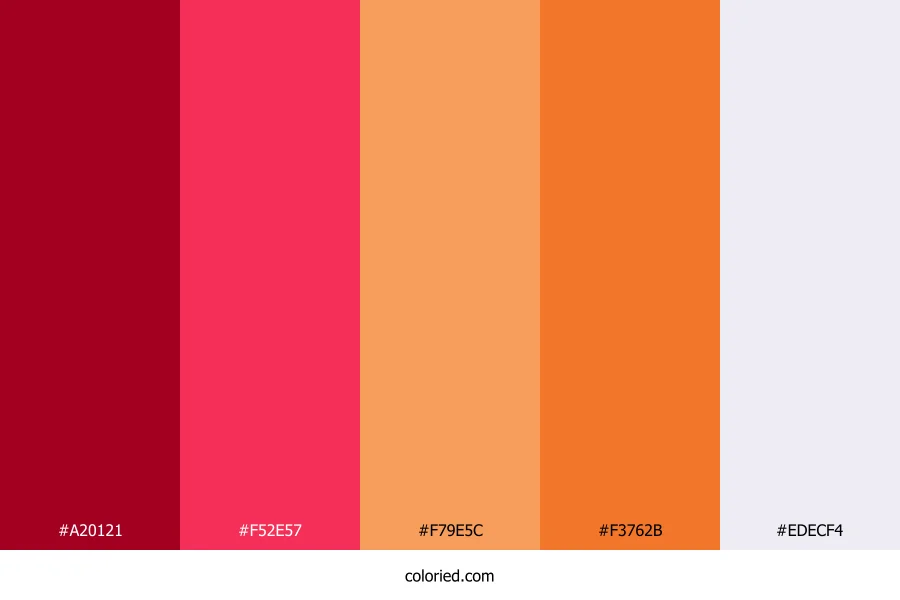 ![]() | #A20121 | 162, 1, 33 | 348, 99%, 32% | 0%, 99%, 80%, 36% | oklch(0.450 0.181 22) |