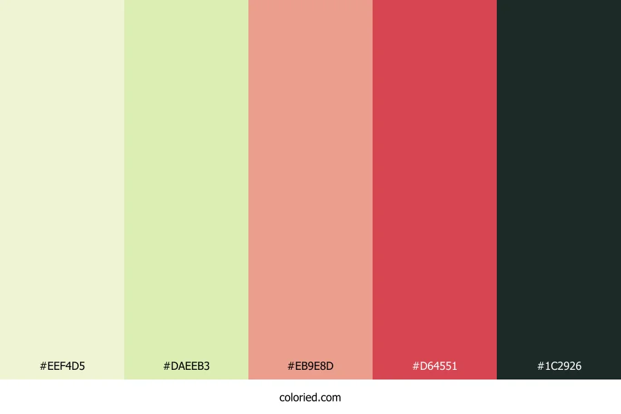 ![]() | #EEF4D5 | 238, 244, 213 | 72, 58%, 90% | 2%, 0%, 13%, 4% | oklch(0.955 0.041 116) |