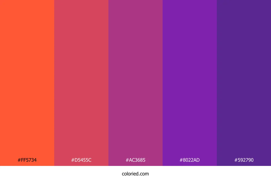 ![]() | #FF5734 | 255, 87, 52 | 10, 100%, 60% | 0%, 66%, 80%, 0% | oklch(0.680 0.210 33) |