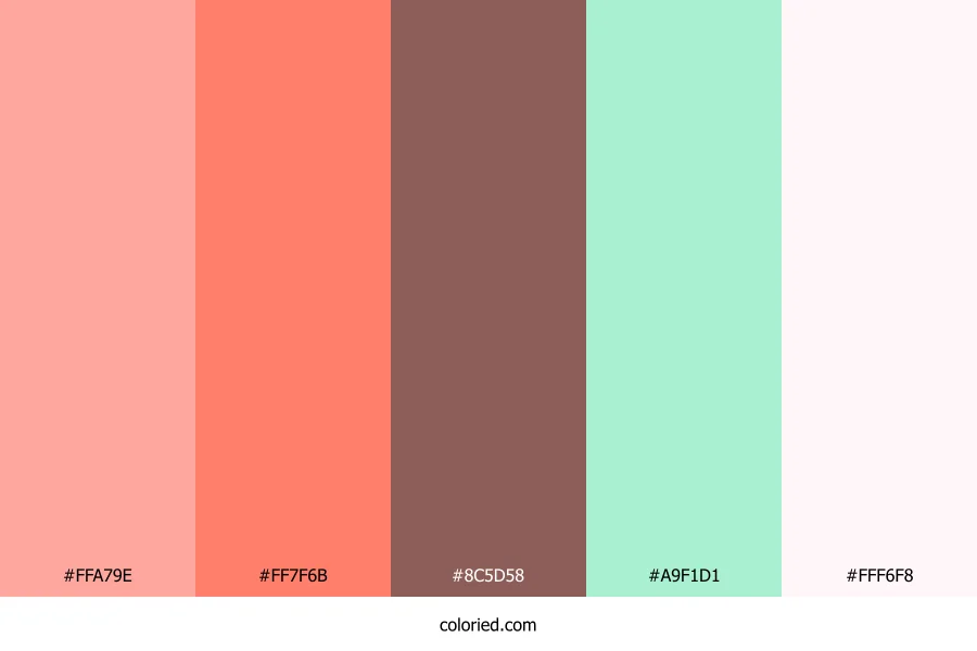 ![]() | #FFA79E | 255, 167, 158 | 6, 100%, 81% | 0%, 35%, 38%, 0% | oklch(0.813 0.106 26) |