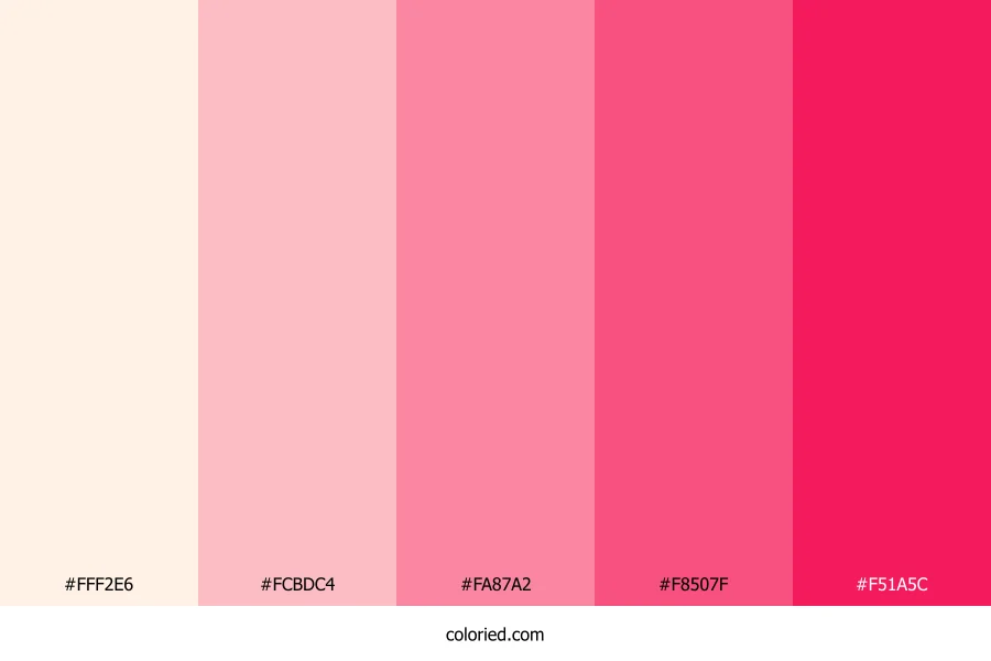 | #F51A5C | 245, 26, 92 | 342, 92%, 53% | 0%, 89%, 62%, 4% | oklch(0.625 0.240 13) |