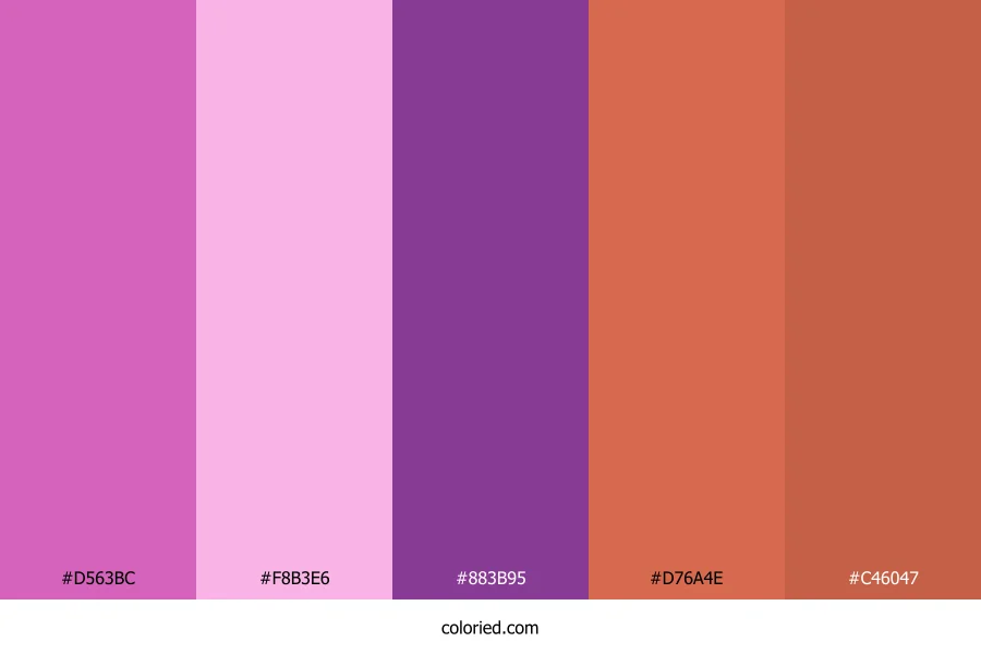 ![]() | #D563BC | 213, 99, 188 | 313, 58%, 61% | 0%, 54%, 12%, 16% | oklch(0.667 0.177 337) |