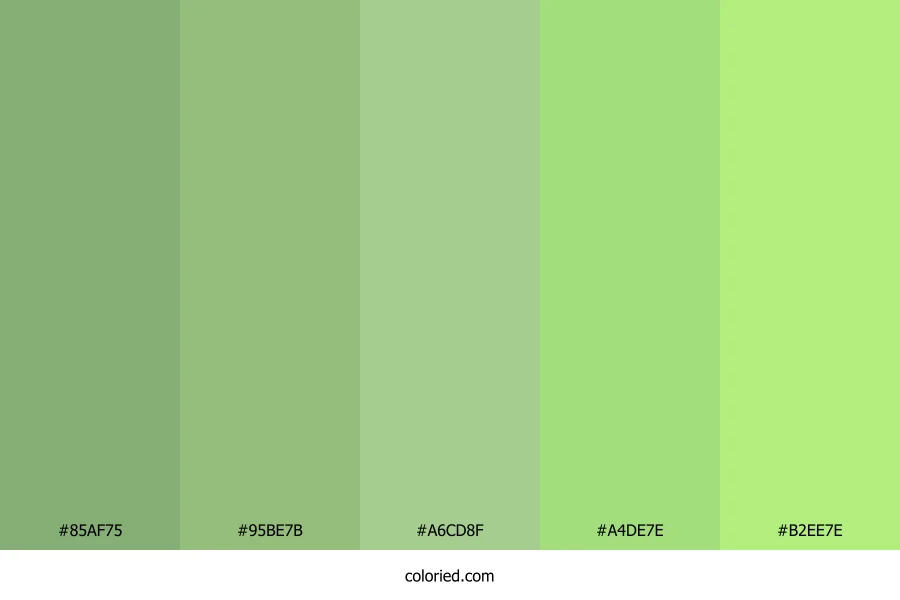 ![]() | #85AF75 | 133, 175, 117 | 103, 27%, 57% | 24%, 0%, 33%, 31% | oklch(0.709 0.093 137) |