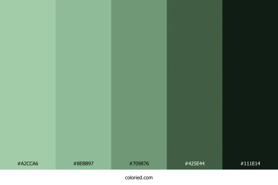 | #111E14 | 17, 30, 20 | 134, 28%, 9% | 43%, 0%, 33%, 88% | oklch(0.219 0.027 151) |