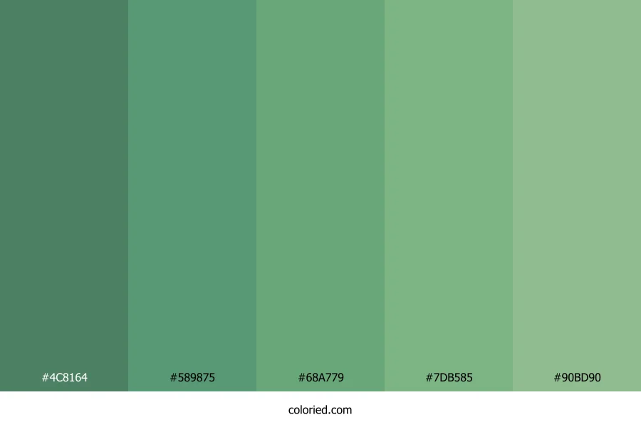 | #90BD90 | 144, 189, 144 | 120, 25%, 65% | 24%, 0%, 24%, 26% | oklch(0.754 0.080 145) |