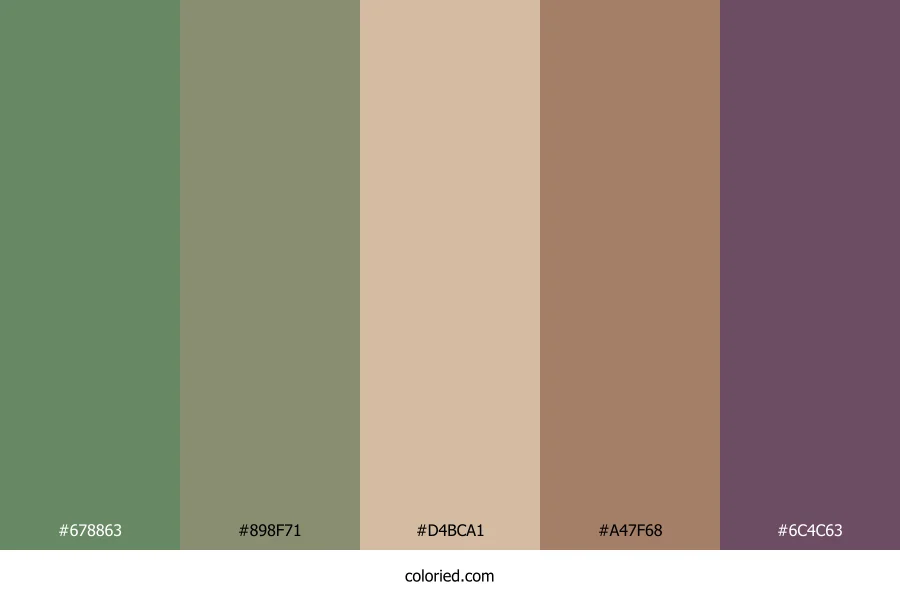 ![]() | #678863 | 103, 136, 99 | 114, 16%, 46% | 24%, 0%, 27%, 47% | oklch(0.591 0.067 142) |