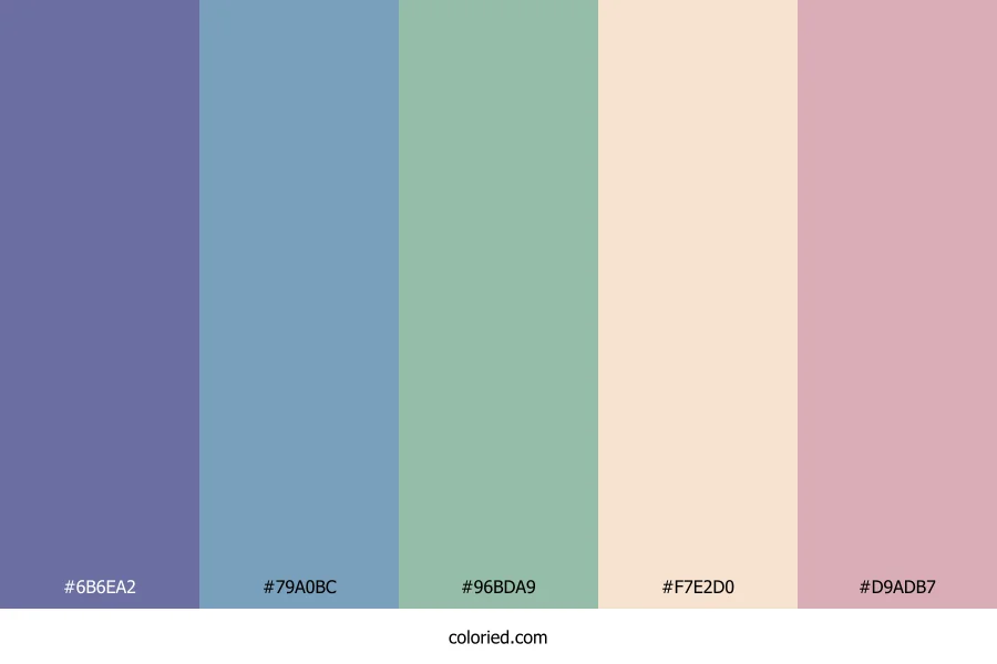 ![]() | #6B6EA2 | 107, 110, 162 | 237, 23%, 53% | 34%, 32%, 0%, 36% | oklch(0.557 0.080 281) |