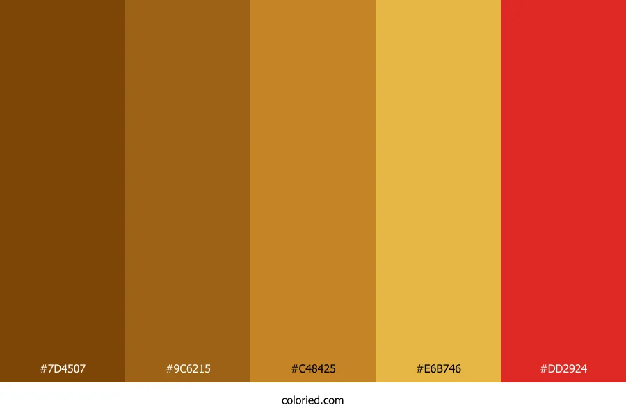 ![]() | #7D4507 | 125, 69, 7 | 32, 89%, 26% | 0%, 45%, 94%, 51% | oklch(0.449 0.102 60) |