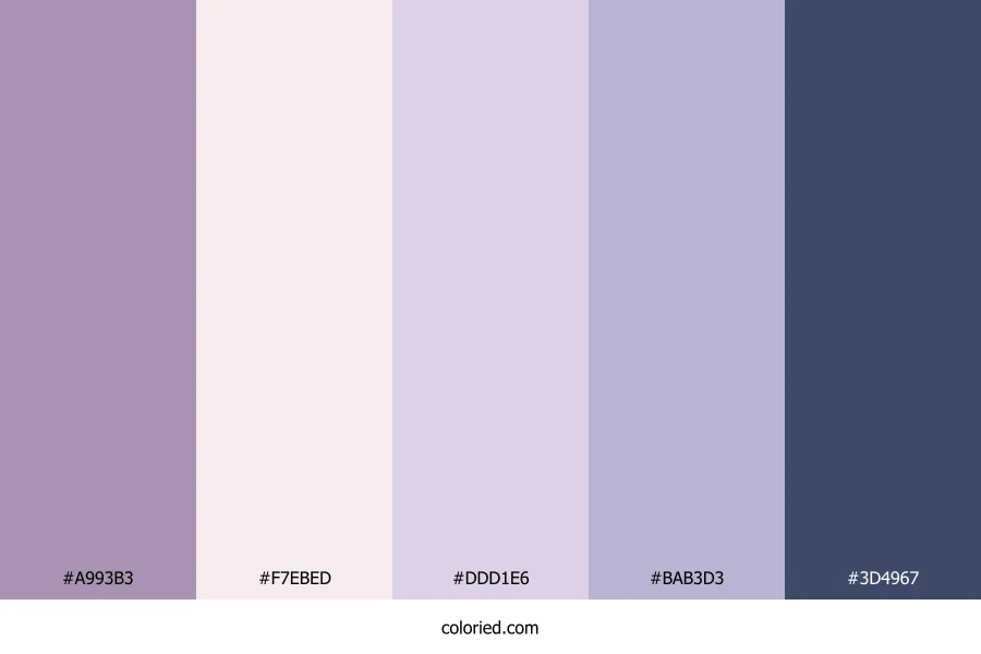 ![]() | #A993B3 | 169, 147, 179 | 281, 17%, 64% | 6%, 18%, 0%, 30% | oklch(0.693 0.052 315) |