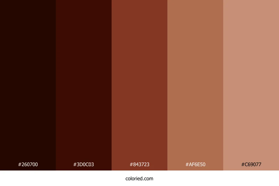 | #AF6E50 | 175, 110, 80 | 19, 37%, 50% | 0%, 37%, 54%, 31% | oklch(0.601 0.094 45) | |