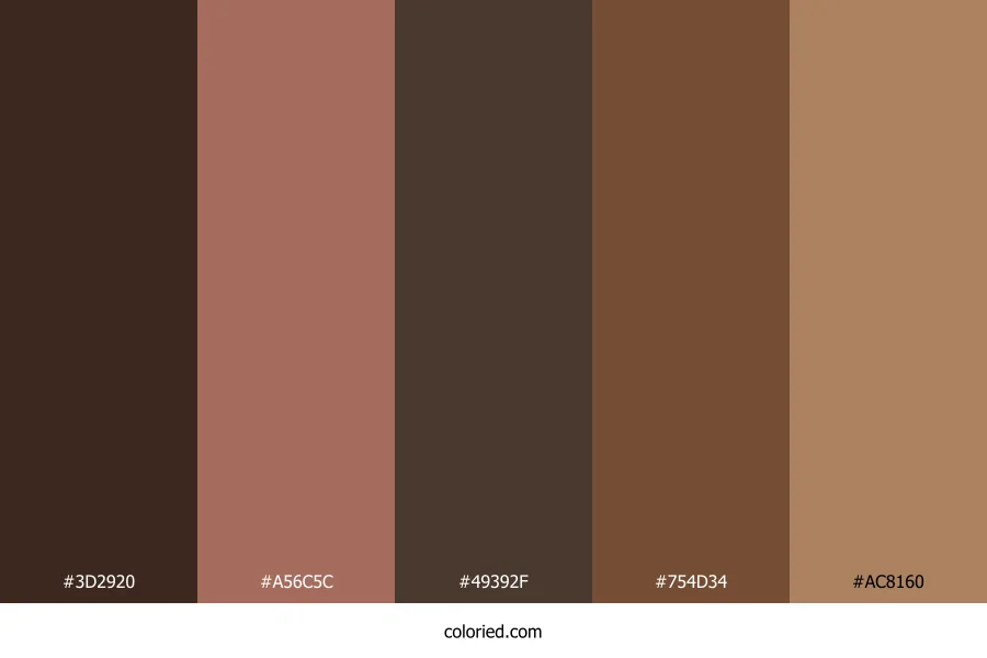 | #49392F | 73, 57, 47 | 23, 22%, 24% | 0%, 22%, 36%, 71% | oklch(0.359 0.028 54) | |
