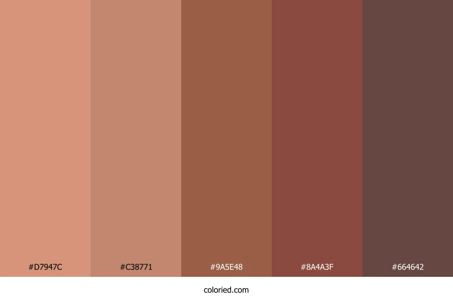 | #C38771 | 195, 135, 113 | 16, 41%, 60% | 0%, 31%, 42%, 24% | oklch(0.678 0.081 41) | |