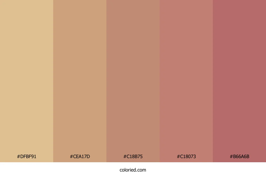 ![]() | #DFBF91 | 223, 191, 145 | 35, 55%, 72% | 0%, 14%, 35%, 13% | oklch(0.821 0.071 76) |