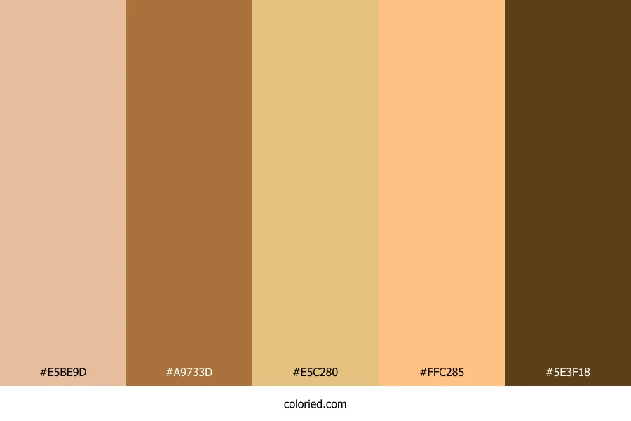 | #E5C280 | 229, 194, 128 | 39, 66%, 70% | 0%, 15%, 44%, 10% | oklch(0.830 0.093 83) | |