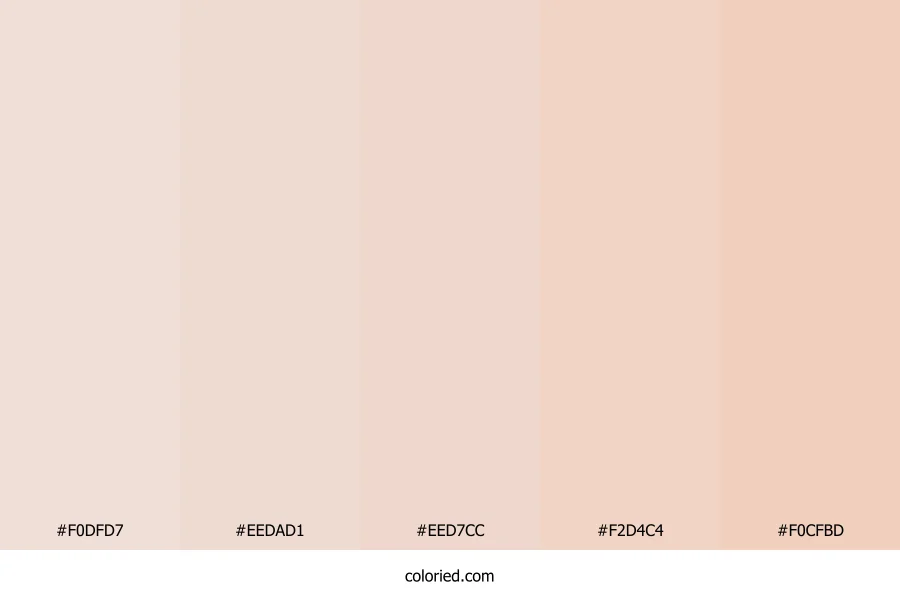 | #F2D4C4 | 242, 212, 196 | 21, 64%, 86% | 0%, 12%, 19%, 5% | oklch(0.891 0.040 50) | |