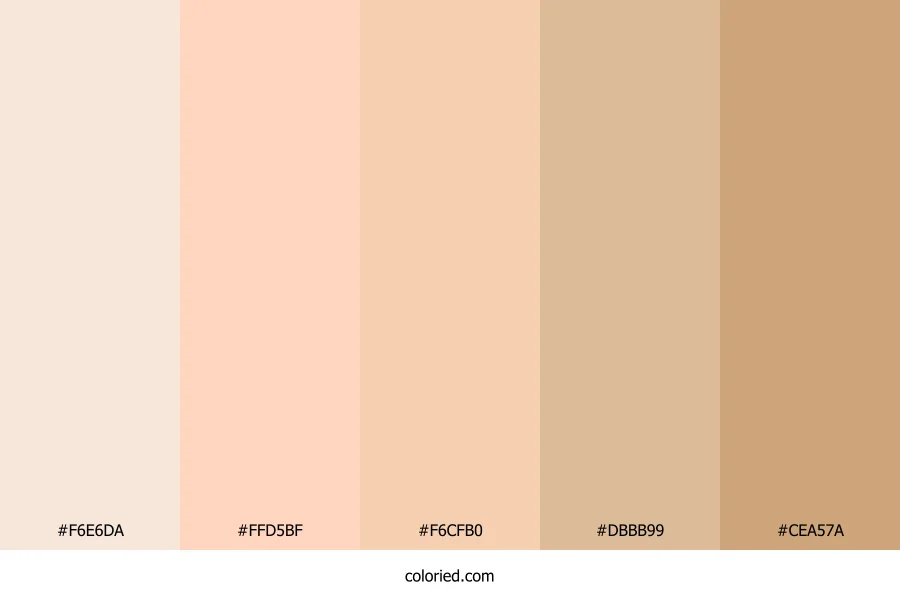 | #DBBB99 | 219, 187, 153 | 31, 48%, 73% | 0%, 15%, 30%, 14% | oklch(0.811 0.059 69) | |