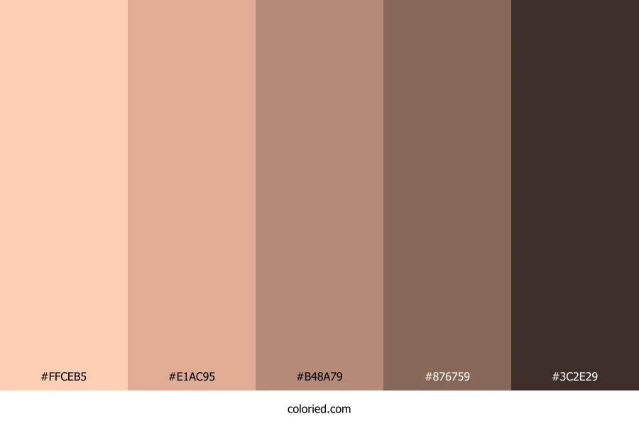| #B48A79 | 180, 138, 121 | 17, 28%, 59% | 0%, 23%, 33%, 29% | oklch(0.669 0.057 43) | |