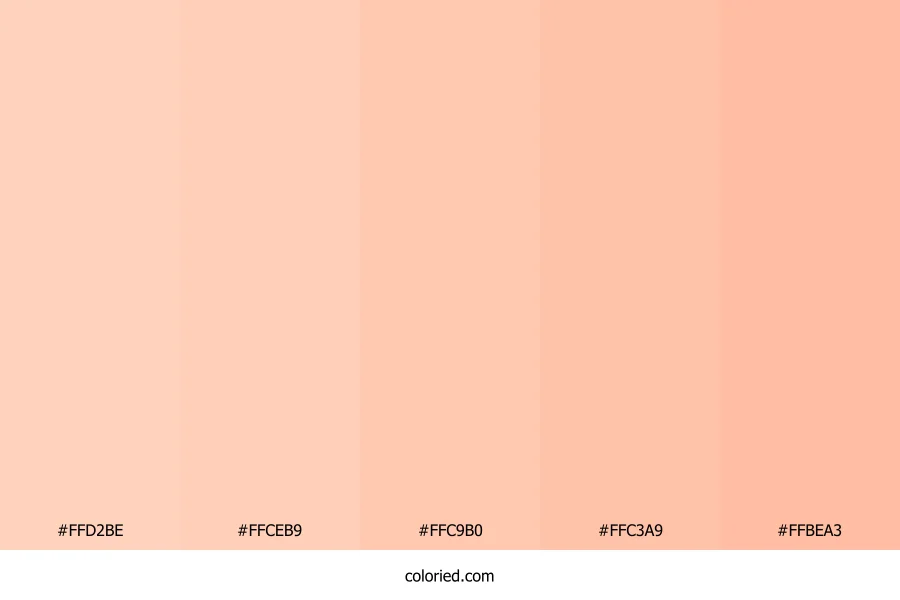 | #FFBEA3 | 255, 190, 163 | 18, 100%, 82% | 0%, 25%, 36%, 0% | oklch(0.854 0.084 44) |