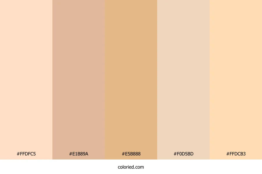 | #E5B888 | 229, 184, 136 | 31, 64%, 72% | 0%, 20%, 41%, 10% | oklch(0.812 0.082 68) | |