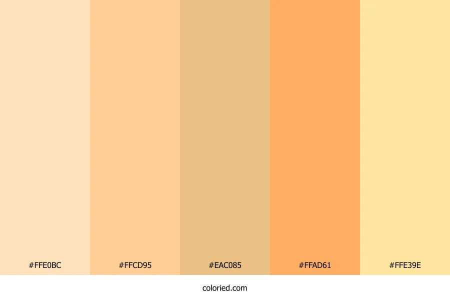 | #FFE39E | 255, 227, 158 | 43, 100%, 81% | 0%, 11%, 38%, 0% | oklch(0.923 0.092 88) |