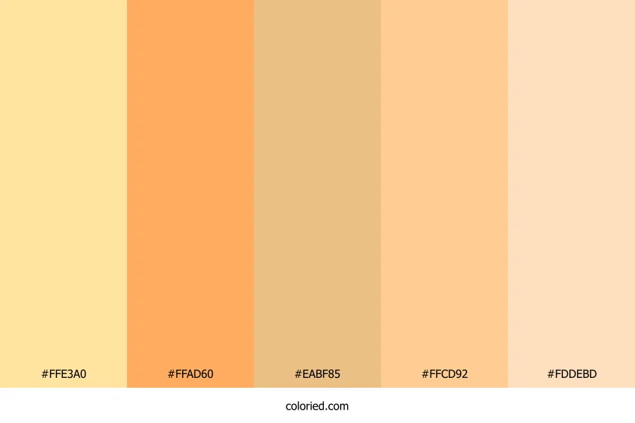 ![]() | #FFE3A0 | 255, 227, 160 | 42, 100%, 81% | 0%, 11%, 37%, 0% | oklch(0.924 0.090 88) |
