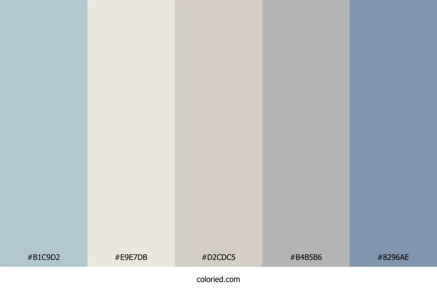 ![]() | #B1C9D2 | 177, 201, 210 | 196, 27%, 76% | 16%, 4%, 0%, 18% | oklch(0.821 0.029 222) |