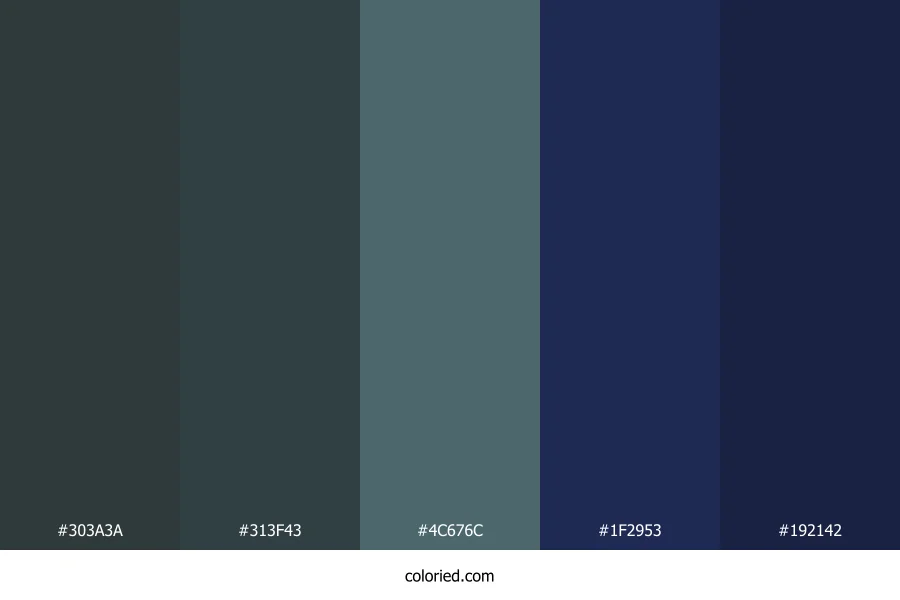 | #313F43 | 49, 63, 67 | 193, 16%, 23% | 27%, 6%, 0%, 74% | oklch(0.357 0.020 217) | |
