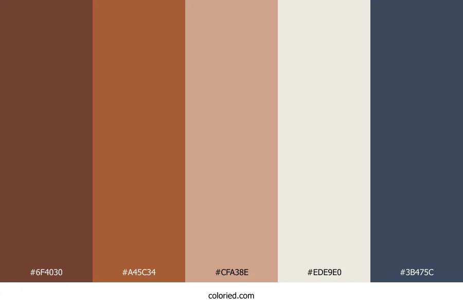 ![]() | #6F4030 | 111, 64, 48 | 15, 40%, 31% | 0%, 42%, 57%, 56% | oklch(0.424 0.071 39) |