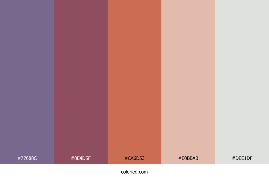 ![]() | #77688C | 119, 104, 140 | 265, 15%, 48% | 15%, 26%, 0%, 45% | oklch(0.545 0.058 304) |