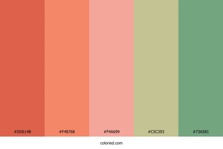 ![]() | #DD614B | 221, 97, 75 | 9, 68%, 58% | 0%, 56%, 66%, 13% | oklch(0.643 0.160 32) |