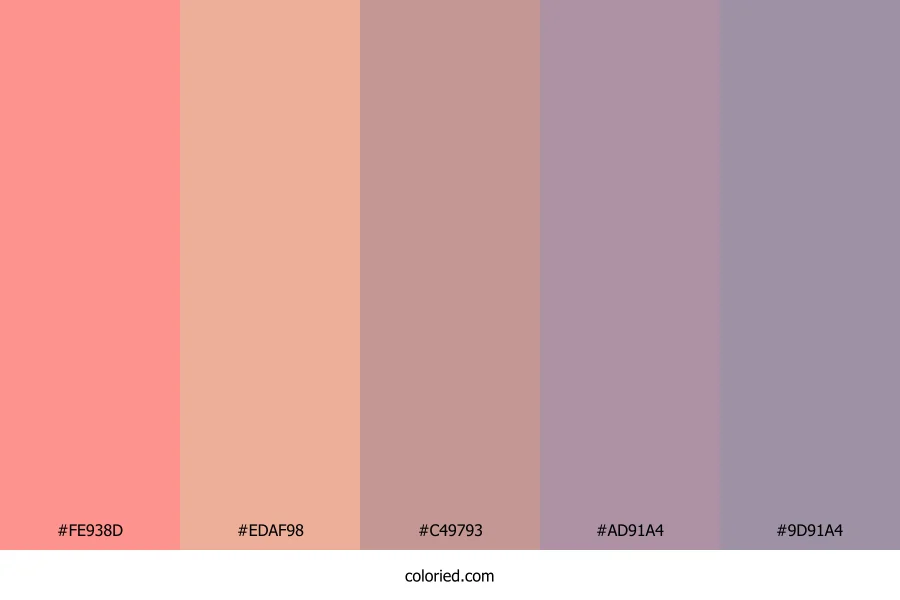 ![]() | #FE938D | 254, 147, 141 | 3, 98%, 77% | 0%, 42%, 44%, 0% | oklch(0.775 0.130 24) |