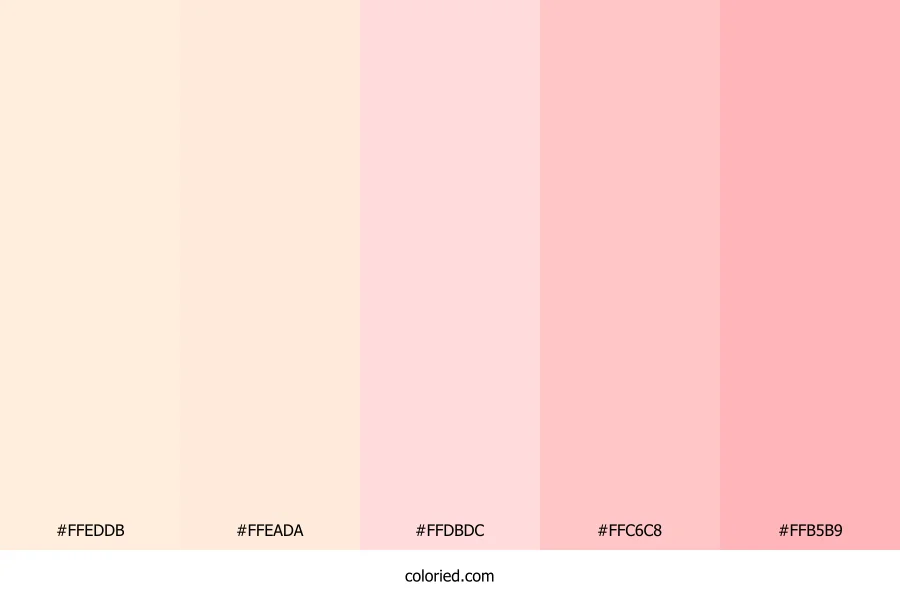| #FFB5B9 | 255, 181, 185 | 357, 100%, 85% | 0%, 29%, 27%, 0% | oklch(0.844 0.086 15) |