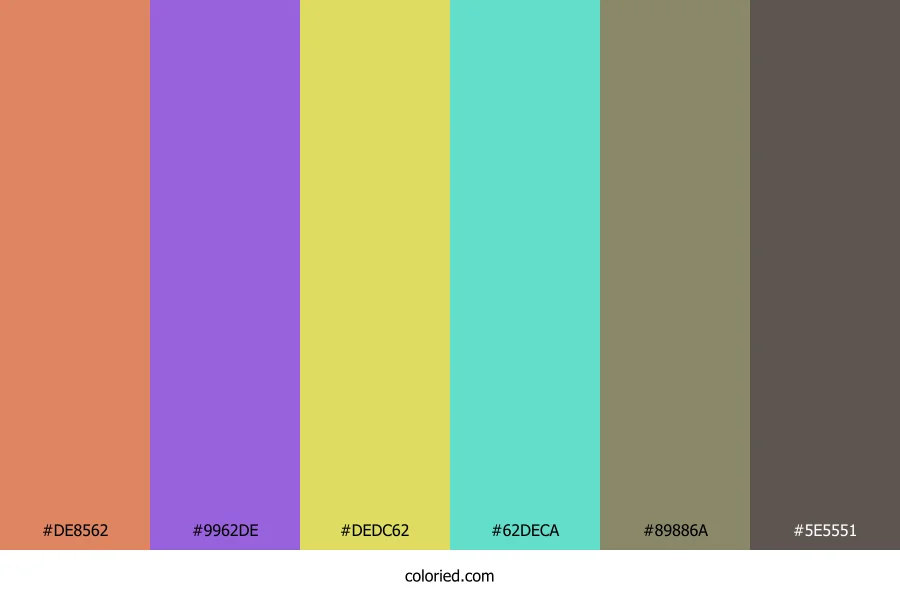 ![]() | #DE8562 | 222, 133, 98 | 17, 65%, 63% | 0%, 40%, 56%, 13% | oklch(0.704 0.120 42) |