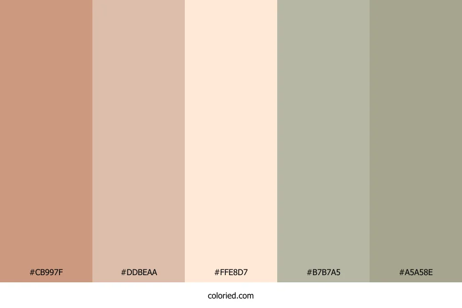 ![]() | #CB997F | 203, 153, 127 | 21, 42%, 65% | 0%, 25%, 37%, 20% | oklch(0.724 0.070 49) |